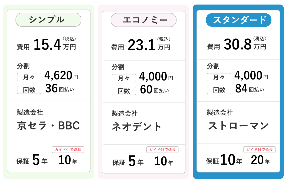 ※2)ガイドシステムをご利用いただいた場合は保証期間が2倍になります(シンプル・エコノミー:10年、スタンダード:20年、プレミアム:30年)。