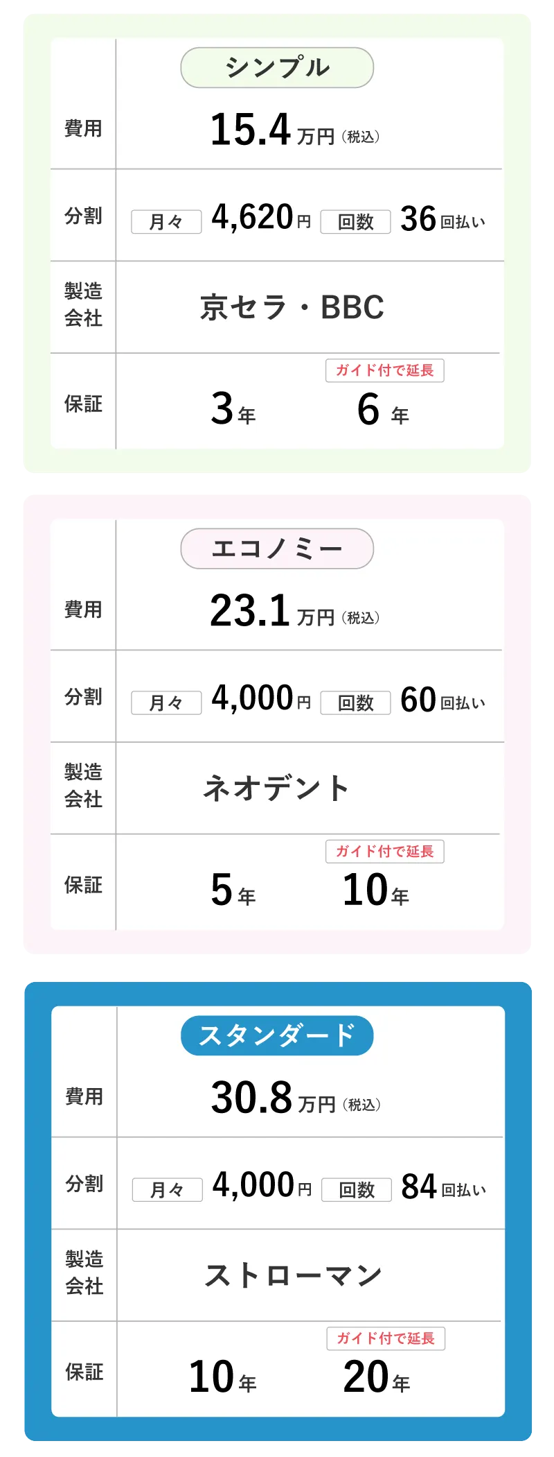 ※2)ガイドシステムをご利用いただいた場合は保証期間が2倍になります(シンプル:6年、エコノミー:10年、スタンダード:20年、プレミアム:30年)。