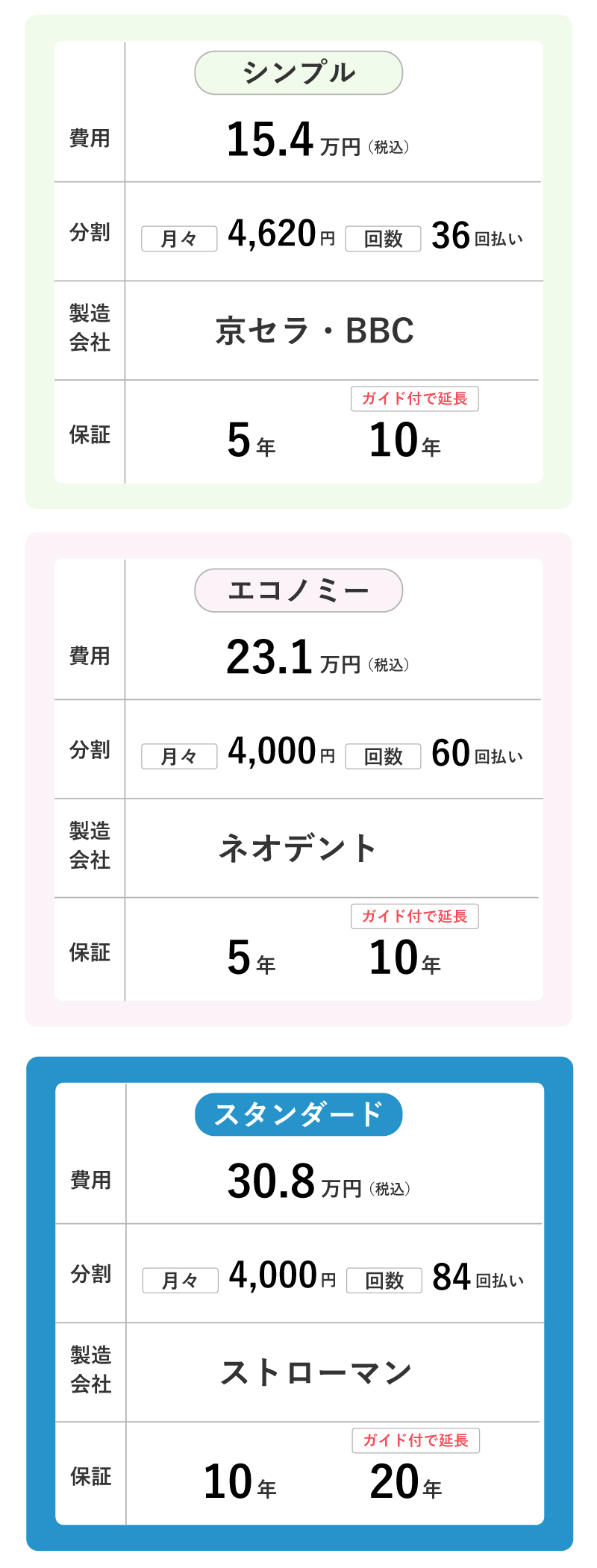 ※2)ガイドシステムをご利用いただいた場合は保証期間が2倍になります(シンプル・エコノミー:10年、スタンダード:20年、プレミアム:30年)。