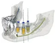 ガイドシステムとは、CTで撮影した画像データとソフトウェアを用いて、コンピュータ上で埋め込むインプラントのサイズや角度、深さ等をシミュレーションする仕組みのことです。更にシミュレーションに基づいて、インプラントを埋め込む位置や角度をガイドするためのテンプレート(サージカルガイド)を作成します。このテンプレートをお口に取り付けてインプラントの埋入を行うため、よりスムーズかつより正確な位置にインプラントの埋入が可能となります。